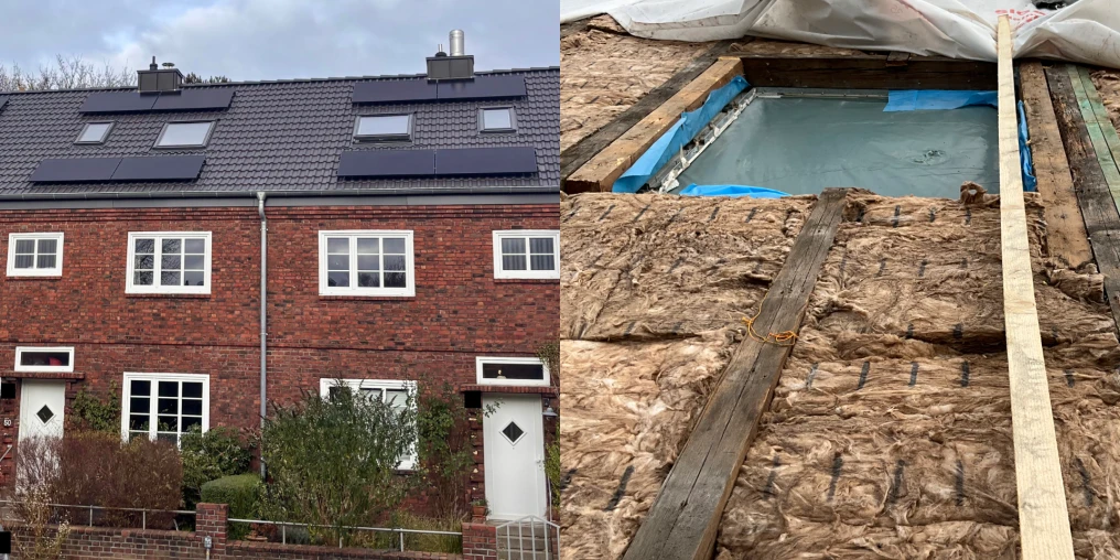 Vier zusammenhängende Reihenhäuser in Hamburg aus dem Jahr 1928 standen vor der nächsten energetischen Entscheidung. Wie wird das Dach sinnvoll saniert? Dieses Praxisbeispiel zeigt, wie Strategie, Energieeffizienz, Förderung und Bauphysik zusammenwirken.